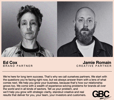 We can’t work with everyone we meet, but if you’ve got a question about your brand you want us to help with, use the form below or email us at: starthere@gbcpartners.uk